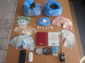 Σε έρευνα που ακολούθησε σπίτι του, στο οποίο συνελήφθη και η νεαρή γυναίκα, βρέθηκαν συνολικά και κατασχέθηκαν: