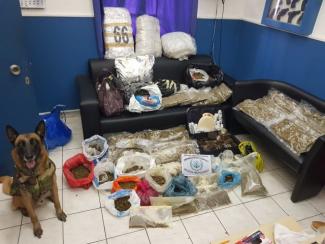 Συγκεκριμένα, κατόπιν αξιοποίησης πληροφοριών, σε νομότυπη έρευνα που διενεργήθηκε από στελέχη Λ.Σ.-ΕΛ.ΑΚΤ. με τη συνδρομή αστυνομικού σκύλου ανίχνευσης ναρκωτικών ουσιών Λ.Σ.-ΕΛ.ΑΚΤ. σε οικία στο Γαλάτσι και στην οποία εντοπίστηκαν οι ανωτέρω, βρέθηκαν και κατασχέθηκαν: