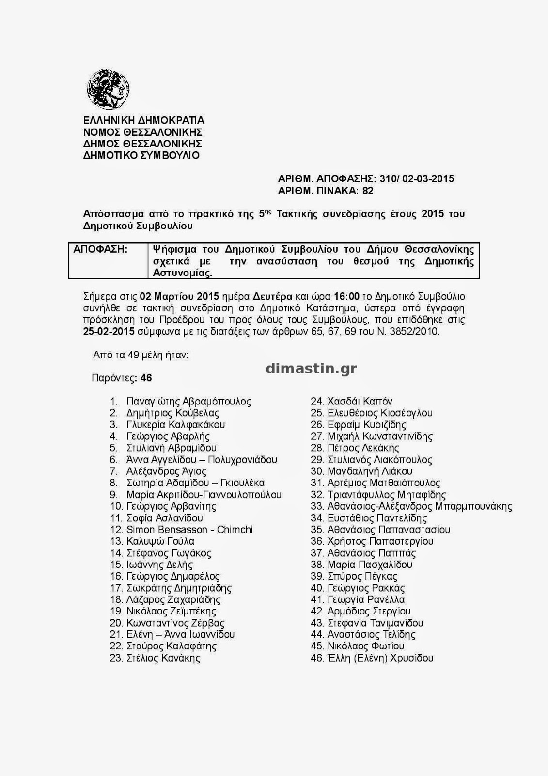 Με τον τρόπο αυτό θα αξιοποιηθεί άμεσα το διαθέσιμο προσωπικό, θα αποφευχθεί το φαινόμενο της επικάλυψης αρμοδιοτήτων με την ΕΛ.ΑΣ., θα βελτιωθεί σημαντικά η ικανότητα του Δήμου Θεσσαλονίκης να ασκήσει αποδοτικότερα και αποτελεσματικότερα τον ρόλο του προς όφελος των δημοτών και το κυρότερο χωρίς καμία δημοσιονομική επιβάρυνση αλλά αντίθετα όφελος.