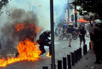 Ομάδες αντιεξουσιαστών έκαναν πορεία προς το Σύνταγμα και ενώθηκαν με όλους τους συγκεντρωμένους του παλλαϊκού συλλαλητηρίου. Κάποια στιγμή όμως βγήκαν από το πλήθος και άρχισαν να εκτοξεύουν δεκάδες μολότοφ προς τα ΜΑΤ. Η αστυνομία απάντησε με δακρυγόνα και χειροβομβίδες κρότου-λάμψης.