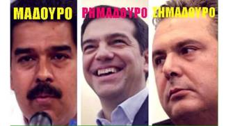 Τελευταία “δημιουργία”, η οποία έγινε και Viral στο διαδίκτυο είναι το... παιχνίδι με το όνομα του προέδρου της Βενεζουέλας Μαδούρο και η ... φιλοδοξία που μάλλον έχουν οι εδώ κυβερνώντος να του μοιάσουν. Έτσι, τόσο ο πρωθυπουργός Αλέξης Τσίπρας, όσο και ο... συγκυβερνήτης του Πάνος Καμμένος αποκτούν παρατσούκλια, που βασίζονται στην κατάληξη του ονόματος του Μαδούρο, ώστε να αποδίδουν κάποιες... ιδιότητες, που κατά τους χρήστες του ίντερνετ διαθέτουν!