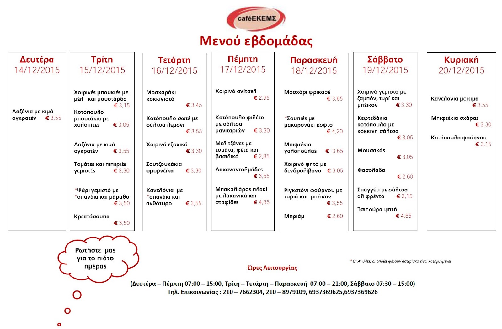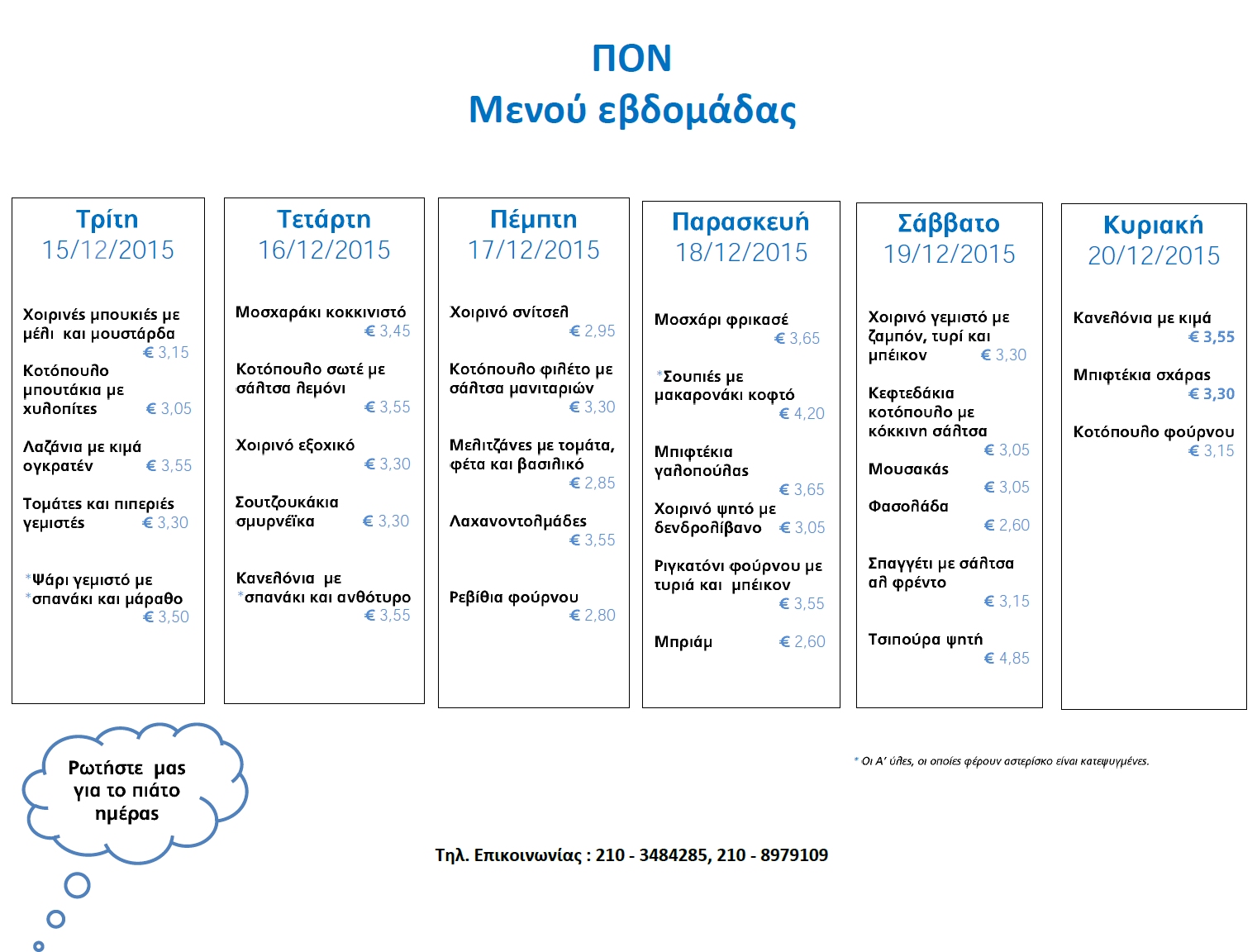 Δείτε παρακάτω τα εβδομαδιαία μενού των εστιατορίων των στρατιωτικών καταστημάτων: