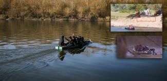 Τούρκοι στρατοχωροφύλακες περιπολούν με φουσκωτό στον Εβρο ποταμό. Μόλις αντιλαμβάνονται ότι οι ελληνικές δυνάμεις τους παρακολουθούν άγρυπνα από την απέναντι πλευρά αναπτύσσουν επιδεικτικά ταχύτητα, σύμφωνα με το αποκλειστικό βίντεο ντοκουμέντο που παρουσιάζει το OPEN και ο δημοσιογράφος Παναγιώτης Μανής.