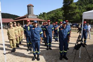Ο Υπαρχηγός του Πυροσβεστικού Σώματος Αντιστράτηγος Ιάκωβος Κλεφτοσπύρος μεταφέροντας τους θερμούς χαιρετισμούς του Υφυπουργού Πολιτικής Προστασίας και Διαχείρισης Κρίσεων Νίκου Χαρδαλιά με πρωτοβουλία του οποίου υλοποιήθηκε η ίδρυση ογδόντα (80) Πυροσβεστικών κλιμακίων για την αντιπυρική θωράκιση τη χώρας, ανέφερε ότι, «…η πολιτεία στο πλαίσιο της εμπέδωσης του αισθήματος της ασφάλειας στον Έλληνα πολίτη, καταβάλλει ιδιαίτερες προσπάθειες, οργανώνοντας μηχανισμούς για την αντιμετώπιση και τον περιορισμό των καταστροφών τόσο από τα φυσικά όσο και τεχνολογικά φαινόμενα. Το Εποχικό Πυροσβεστικό Κλιμάκιο που εγκαινιάζουμε σήμερα αποδεικνύει έμπρακτα αυτό το ενδιαφέρον της Πολιτείας για τον τόπο αυτό, ένα τόπο που επλήγη πολλές φορές από πυρκαγιές, με μεγαλύτερη αυτή του 1998, από την οποία υπέστη σοβαρές ζημιές η ευρύτερη περιοχή. Μία νέα επιχειρησιακή μονάδα του Πυροσβεστικού Σώματος, από σήμερα θα λειτουργεί σε 24ωρη βάση, με σκοπό την προστασία της ζωής και της περιουσίας των κατοίκων της περιοχής, καθώς και την αποτροπή εκδήλωσης μεγάλων φυσικών καταστροφών που θα έχουν επιπτώσεις στο φυσικό περιβάλλον της περιοχής. Πέρα από την ενίσχυση της πυροπροστασίας και της πολιτικής προστασίας, ενισχύονται και οι συνθήκες που θα βοηθήσουν στην ευημερία, την ασφάλεια, την πρόοδο και την ανάπτυξη της περιοχής. Η νέα αυτή μας υπηρεσία, διαθέτει όλο τον απαραίτητο μηχανολογικό εξοπλισμό, αλλά το κυριότερο το έμψυχο δυναμικό, τους Πυροσβέστες μας, που με τον επαγγελματισμό, την άρτια εκπαίδευσή τους και την υψηλή αίσθηση του καθήκοντος, θα βρίσκονται δίπλα στους πολίτες για να εγγυηθούν την ασφάλεια της ζωής, της περιουσίας τους, αλλά και την προστασία του εθνικού φυσικού πλούτου. Θα ήθελα να σας εγγυηθώ, ότι το πυροσβεστικό προσωπικό της νέας αυτής Υπηρεσίας θα επιτελέσει το καθήκον του, συνεχίζοντας την πυροσβεστική παράδοση της αυτοθυσίας, γενναιότητας και υψηλής επαγγελματικής απόκρισης. Δείξτε τους λοιπόν την εμπιστοσύνη και την αγάπη σας. Είναι ό,τι πιο πολύτιμο μπορείτε να τους προσφέρετε, ως ενθάρρυνση στο δύσκολο και επικίνδυνο έργο που επιτελούν».