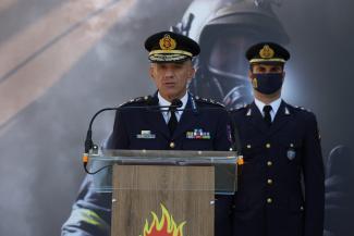 Τελειώνοντας την ομιλία του ο Αρχηγός του Πυροσβεστικού Σώματος Αντιστράτηγος Στέφανος Κολοκούρης τόνισε: «… οφείλω να κάνω ιδιαίτερη αναφορά και να ευχαριστήσω για την στήριξη του, τον πρώην Υπουργό Προστασίας του Πολίτη κ. Μιχάλη Χρυσοχοΐδη και τον πρώην Υφυπουργό Πολιτικής Προστασίας και Διαχείρισης Κρίσεων κ. Νίκο Χαρδαλιά, οι οποίοι στάθηκαν δίπλα μου από την πρώτη στιγμή, αρωγοί και συμπαραστάτες σε όλες τις δύσκολες μάχες που κληθήκαμε να αντιμετωπίσουμε φέτος το καλοκαίρι».