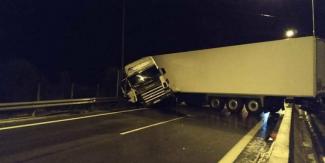 Η νταλίκα δεν είχε φορτίο και καταβάλεται προσπάθεια να ανοίξει η μία λωρίδα στο ρεύμα προς Θεσσαλονίκη.