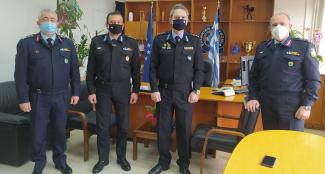 Τη Γενική Περιφερειακή Αστυνομική Διεύθυνση Δυτικής Ελλάδας και τη Διεύθυνση Αστυνομίας Αχαΐας, επισκέφθηκαν χθες και σήμερα το πρωί, ο Ανώτερος Διοικητής Φρουράς ΚΕΤΧ Πατρών Ταξίαρχος Γεώργιος Ουρουμίδης και ο Συντονιστής Πυροσβεστικών Υπηρεσιών Πελοποννήσου, Δυτικής Ελλάδας και Ιονίων Νήσων Υποστράτηγος Γεώργιος Πουρναράς συνοδευόμενος από τον Περιφερειακό Διοικητή Πυροσβεστικών Υπηρεσιών Δυτικής Ελλάδας Αρχιπύραρχο Ανδρέα Στεμπίλη, όπου συναντήθηκαν με τον Γενικό Περιφερειακό Αστυνομικό Διευθυντή, Υποστράτηγο Απόστολο Μαρτζάκλη και τον Διευθυντή της Διεύθυνσης Αστυνομίας Αχαΐας Ταξίαρχο Ιωάννη Κυριακόπουλο.