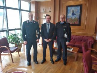 Στο πλαίσιο των επισκέψεων, ο κ. Γενικός Περιφερειακός Αστυνομικός Διευθυντής, συνοδευόμενος από τον Αστυνομικό Διευθυντή Αλεξανδρούπολης, Αστυνομικό Διευθυντή Παναγιώτη Καρτάλη, συναντήθηκε με τον Σεβασμιώτατο Μητροπολίτη Αλεξανδρουπόλεως, Τραϊανουπόλεως και Σαμοθράκης κ.κ. Άνθιμο, τον Αντιπεριφερειάρχη Έβρου κ. Πέτροβιτς Δημήτριο και τον Δήμαρχο Αλεξανδρούπολης κ. Ζαμπούκη Ιωάννη, οι οποίοι τον συνεχάρησαν και του ευχήθηκαν καλή επιτυχία στα νέα του καθήκοντα, ενώ συζητήθηκαν ζητήματα κοινού, τοπικού ενδιαφέροντος.