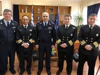 Ο Πλοίαρχος (ΛΣ) Δρόσος ΡΕΪΖΗΣ, με τον Πλοίαρχο (ΛΣ) ΚΥΡΙΑΚΟΥΛΟΠΟΥΛΟ Δημήτριο, με αφορμή τη πρόσφατη αλλαγή Διοίκησης στο Κεντρικό Λιμεναρχείο Πατρών, επισκέφθηκαν σήμερα (28-3-2018) το πρωί, τη Γενική Περιφερειακή Αστυνομική Διεύθυνση Δυτικής Ελλάδας, όπου συναντήθηκαν με τον Γενικό Περιφερειακό Αστυνομικό Διευθυντή, Ταξίαρχο Κωνσταντίνο ΣΤΕΦΑΝΟΠΟΥΛΟ.