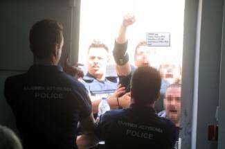 Η αστυνομία επενέβη και κατάφερε να κρατήσει εκτός της δικαστικής αίθουσας τους νεαρούς.