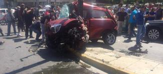 Συγκεκριμένα, το αυτοκίνητο που κινούνταν με κατεύθυνση προς την Αθήνα εξετράπη της πορείας του και προσέκρουσε επάνω σε τρία σταθμευμένα οχήματα.