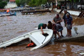 Εικόνες χάους στη Σκόπελο μετά την καταρρακτώδη βροχή και τις πλημμύρες.