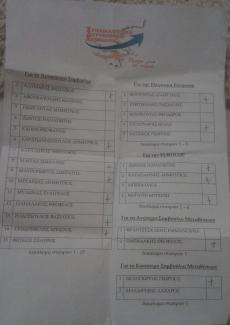 Παρα ταυτα προσεκόμισα εισαγγελική παραγγελία στο Α.Τ. Αμπελοκήπων και επελήφθη ανώτερος αξιωματικός ,όπου και άμεσα μου χορήγησε αντίγραφο ενεργειών.Επειδή πλέον θεωρω αδιανόητο, σε έναν μικρο σχετικα αριθμό ψηφοδελτίων να έγιναν συσωρευμένα λάθη απο τον δικαστικό, η την εφορευτική επιτροπή, θα υποβληθεί μηνυτήρια αναφορά και θα ορισθεί τεχνικός συμβουλος , προς αποκατάσταση της αλήθειας.Έκπληκτος διαπιστώνω δε ότι στα ήδη διανεμηθέντα δεξια αριστερα αντίγραφα ψηφοδελτίων αδυνατώ να εντοπίσω το δικό μου.Δηλαδή τις επιλογες υποψηφίων που έκανα κατα την σταυροδοσία.