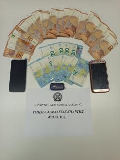 Μετά από άμεση κινητοποίηση, αστυνομικοί της Ομάδας Πρόληψης και Καταστολής του Εγκλήματος (Ο.Π.Κ.Ε.) Λακωνίας, εντόπισαν τις ανωτέρω, οι οποίες επέβαιναν σε Ι.Χ.Ε. αυτοκίνητο και τις συνέλαβαν. Στην κατοχή τους βρέθηκαν συνολικά και κατασχέθηκαν -22- αμφιβόλου γνησιότητας χαρτονομίσματα των -50- ευρώ, το χρηματικό ποσό των -220- ευρώ και δύο (2) κινητά τηλέφωνα, ενώ ανωτέρω όχημα κατασχέθηκε ως μέσο τέλεσης αξιόποινων πράξεων.