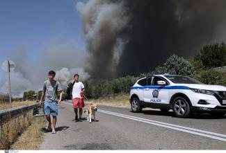 Παράλληλα, ο υπουργός Προστασίας του Πολίτη Μιχάλης Χρυσοχοΐδης μαζί με τον Γενικό Γραμματέα Πολιτικής Προστασίας Βασίλη Παπαγεωργίου πετούν με ελικόπτερο της Πυροσβεστικής πάνω από τη φωτιά συντονίζοντας από αέρος τις δυνάμεις πυρόσβεσης, ενώ το γενικό συντονισμό έχει ο αρχηγός του ΠΣ Στέφανος Κολοκούρης.