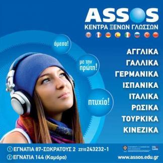 Τα Κέντρα Ξένων Γλωσσών ASSOS στη Θεσσαλονίκη, από το 1998, παραμένουν πιστά στο ραντεβού τους με τους σπουδαστές, προσφέροντας τα πλέον ολοκληρωμένα προγράμματα διδασκαλίας ξένων γλωσσών, με γνώμονα την παροχή υπηρεσιών εκπαίδευσης υψηλού επιπέδου.