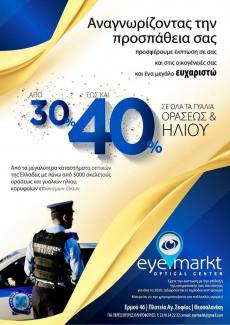 Το κατάστημα οπτικών eye mark OPTICAL CENTER προσφέρει σε ΟΛΟΥΣ ΤΟΥΣ ΑΣΤΥΝΟΜΙΚΟΥΣ του νόμου Θεσσαλονίκης και στις οικογένειες τους, έκπτωση 30%-40% σε όλα τα γυαλιά Οράσεως και Ηλίου, ΜΟΝΟ με την επίδειξη της Υπηρεσιακής Ταυτότητας.