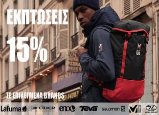 Η έκπτωση ισχύει για όλα τα προϊόντα των Brand: Lafuma, Millet, Salomon, Eider, Teva, Highlander και Eno.