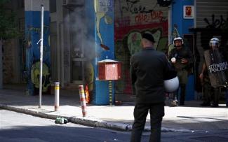 Λίγο αργότερα, οι νεαροί έριξαν μολότοφ κατά της διμοιρίας των ΜΑΤ που βρίσκεται στην οδό Σολωμού.