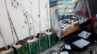 Στην εξωτερική αποθήκη του σπιτιού, ο δράστης είχε στήσει ένα πλήρως εξοπλισμένο εργαστήριο για την παραγωγή χασίς με την υδροπονική μέθοδο καλλιέργεια, στο οποίο κατασχέθηκαν γλάστρες με πέντε δενδρύλλια ύψους 0,50 εκατοστών, δύο βλαστοί από χασισόδεντρα ύψους πέντε εκατοστών που καλλιεργούσε μέσα σε μια τσιμεντένια κατασκευή και ένα αποξηραμένο δενδρύλλιο ύψους 0,50 εκατοστών.