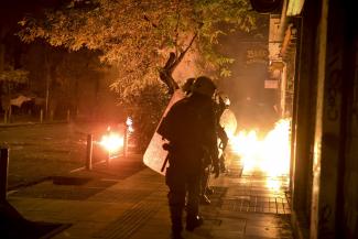 Ομάδα κουκουλοφόρων επιτέθηκε με βόμβες μολότοφ στη διμοιρία των ΜΑΤ έξω από τα γραφεία του ΣΥΡΙΖΑ, περίπου 40 λεπτά μετά τα μεσάνυχτα του Σαββάτου. Η αστυνομία απάντησε με χρήση χημικών και οι δράστες έφυγαν τρέχοντας προς την περιοχή του Ψυρρή. Από την επίθεση προκλήθηκαν ζημιές στην κλούβα των ΜΑΤ, αλλά και σε τρία παρκαρισμένα αυτοκίνητα και μία μοτοσυκλέτα.