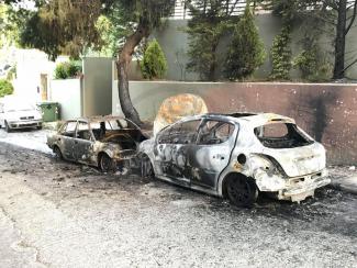 Εκτεταμένες υλικές ζημιές σε δύο σταθμευμένα οχήματα στην οδό Οδυσσέα Ανδρούτσου στα Βριλήσσια, προκάλεσε πυρκαγιά που εκδηλώθηκε κάτω από άγνωστες συνθήκες στις 3:20 τα ξημερώματα της Δευτέρας.