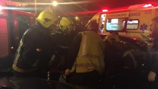 Στο σημείο κλήθηκε το ΕΚΑΒ αλλά και η Πυροσβεστική Υπηρεσία, που έσπευσε με δύο οχήματα και 6 άνδρες, για τον απεγκλωβισμό των τραυματιών.