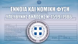 Α. Ο Προϊστάμενος Κλάδου Διαχειριστικής - Τεχνικής Υποστήριξης και Πληροφορικής του Αρχηγείου Ελληνικής Αστυνομίας, με την υπ’ αριθ. 1028/20/1217851 από 12-6-2020 διαταγή του, με θέμα «Χορήγηση ασφαλιστικού δικαιώματος», διέταξε την υποβολή από τους νεοπροσληφθέντες Ειδικούς Φρουρούς υπέυθυνσης δήλωσης, για το εάν διαθέτουν ασφαλιστική ικανότητα, χωρίς η απαίτηση αυτή να βρίσκει έρεισμα στις διατάξεις του ν. 1599/1986 «Σχέσεις κράτους - πολίτη, καθιέρωση νέου τύπου δελτίου ταυτότητας και άλλες διατάξεις» (Φ.Ε.Κ. Α' 75), με αποτέλεσμα το Σ.Ε.Φ.Ε.Α.Α. να γίνει αποδέκτης ερωτημάτων αλλά και παραπόνων συναδέλφων Ειδικών Φρουρών και μελών μας, αναφορικά με την έννοια και νομική φύση της υπεύθυνης δήλωσης του ν. 1599/1986 και την υποχρέωση ή μη υποβολής αυτής.