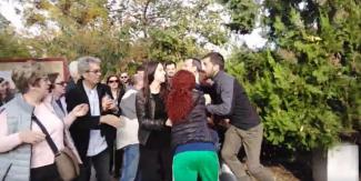 Όταν τελικά τα μέλη του κόμματος της αξιωματικής αντιπολίτευσης κατάφεραν να καταθέσουν το στεφάνι, οι φοιτητές το πήραν και το κατέστρεψαν.