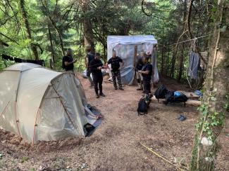 Στον χώρο των φυτειών εντοπίστηκαν σκαπτικά εργαλεία, σύνεργα και είδη ποτίσματος, ενώ βρέθηκαν δυο (2) πρόχειρα καταλύματα, στα οποία διέμεναν τρία από τα μέλη της εγκληματικής ομάδας που ήταν επιφορτισμένα με τη φροντίδα και την επιτήρηση των φυτειών.
