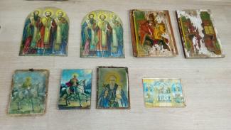 Σε έρευνα που πραγματοποιήθηκε στο χώρο των αποσκευών του αυτοκινήτου, βρέθηκαν και κατασχέθηκαν δώδεκα εικόνες, που όπως προέκυψε από την αστυνομική έρευνα, είχαν κλαπεί από τους δύο κατηγορούμενους το τελευταίο χρονικό διάστημα και συγκεκριμένα: