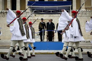 Ο Πρόεδρος της Δημοκρατίας συνεχάρη τον έχοντα το γενικό πρόσταγμα διοικητή της στρατιωτικής σχολής Ευελπίδων υποστράτηγο Χαραλαμπο Λαλούση για το άρτιο και άψογο της παρελάσεως, και στη συνέχεια πήγε κοντά στους αναπήρους πολέμους με τους οποίους αντάλλαξε ευχές. Ανταλλαγή ευχών είχε και με τον κόσμο που είχε συγκεντρωθεί στην πλατεία Συντάγματος.
