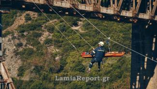 Το σενάριο της φετινής άσκησης, που παρουσιάζει την ετοιμότητα και τη σκληρή εκπαίδευση των στελεχών των Ειδικών Μονάδων Αντιμετώπισης Καταστροφών του Πυροσβεστικού Σώματος, εκτυλίχθηκε στην ιστορική γέφυρα του Γοργοποτάμου.