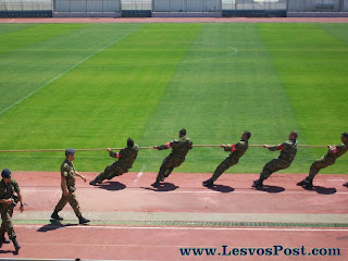 Όσοι τυχεροί βρέθηκαν στις κερκίδες του Σταδίου Μυτιλήνης, είχαν την ευκαιρία να ζήσουν μια διαφορετική εμπειρία, παρακολουθώντας αγωνίσματα, όπως αυτό της διελκυστίνδας, της λογχομαχίας, του δρόμου 1600 μέτρων αλλά και στρατιωτικές επιδείξεις ακρίβειας, οπλοασκήσεις, μεταφοράς τραυματία καθώς και των στρατιωτικών ασμάτων!