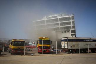 Αξίζει να αναφερθεί ότι εχθές άνοιξε ο καταπέλτης του πλοίου και έβγαλαν κάποια φορτηγά για τη διευκόλυνση των πυροσβεστών, ωστόσο η πρόσβασή τους δεν είναι εύκολη και αναγκάστηκαν να ανοίξουν τρύπες στα πλαϊνά για να ρίχνουν από εκεί αφρό.