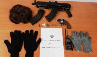 Βρέθηκαν και κατασχέθηκαν, πολεμικό τυφέκιο Kalashnikov , περίστροφο, φυσίγγια, κινητά τηλέφωνα, μικροποσότητα κάνναβης, είδη ρουχισμού και περούκα.