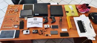 Από τις έρευνες που διενεργήθηκαν στις οικίες των κατηγορουμένων, βρέθηκαν και κατασχέθηκαν πλήθος από χρυσαφικά, ηλεκτρονικές συσκευές, κινητά τηλέφωνα, κυνηγετικά φυσίγγια, μαχαίρι και το χρηματικό ποσό των -115- ευρώ.