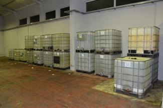 Σε έρευνες που ακολούθησαν στην αποθήκη και το φορτηγό βρέθηκαν και κατασχέθηκαν συνολικά (75) υπέργειες δεξαμενές χωρητικότητας χιλίων (1.000) λίτρων η καθεμία, οι οποίες περιείχαν (43.000) λίτρα μείγματος διαλυτών.