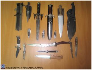- (5) μαχαίρια επιβίωσης και (2) μεταλλικές σπάθες,