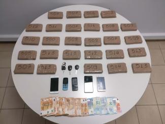 - σε Ι.Χ.Ε. αυτοκίνητο που χρησιμοποιούταν ως μέσο μεταφοράς ναρκωτικών ουσιών, (27) δέματα ηρωίνης συνολικού βάρους (13) κιλών και (752) γραμμαρίων, επιμελώς κρυμμένα σε ειδικά διαμορφωμένη κρύπτη