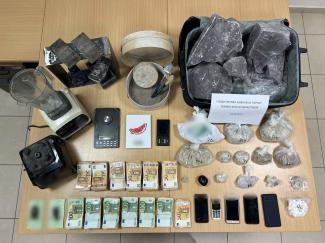 Σε έρευνα που ακολούθησε στην οικία και σε χώρο αποθήκευσης ναρκωτικών των αλλοδαπών διακινητών, οι αστυνομικοί βρήκαν και κατάσχεσαν τα εξής: