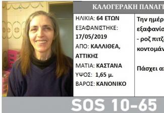 Τα ίχνη της 64χρονης Παναγιώτας Καλογεράκη χάθηκαν ξαφνικά από την Καλλιθέα Αττικής, την Παρασκευή 17 Μαϊου.