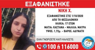 Μία 17χρονη εξαφανίστηκε από την περιοχή της Θεσσαλονίκη την 1 Οκτωβρίου.