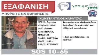 Ένας 54χρονος άνδρας αγνοείται από την Παρασκευή 14 Φεβρουαρίου 2020 από την πόλη της Βέροιας.