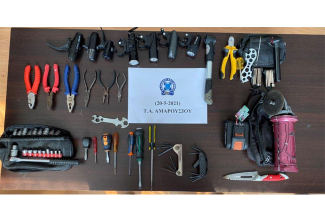 Στην κατοχή του βρέθηκαν και κατασχέθηκαν ποδήλατο και πλήθος διαρρηκτικών εργαλείων.