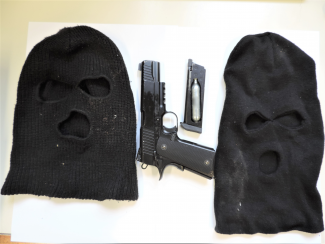 Επιπλέον βρέθηκαν και κατασχέθηκαν ένα (1) αεροβόλο όπλο, ένα (1) μαχαίρι και δύο (2) κουκούλες full face.