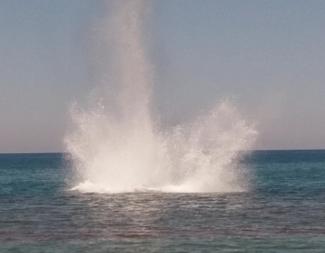 Επρόκειτο για ελεγχόμενη έκρηξη που έγινε στη θαλάσσια περιοχή του Αρίνα, περίπου 50 μέτρα από την ακτή, εκεί όπου βρέθηκε το καλοκαίρι, βόμβα του Β' Παγκοσμίου Πολέμου.