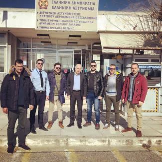 Μέλη του Ενωτικού Κινήματος Αστυνομικών (ΕΚΑ) Θεσσαλονίκης πραγματοποιήσαν επίσκεψη με τον νέο Διευθυντή της Διεύθυνσης Αστυνόμευσης Κρατικού Αερολιμένα Θεσσαλονίκης (ΔΑΚΑΘ) Ταξίαρχο κ. Αριστείδη ΜΠΑΡΜΠΟΥΤΗ, ενόψει της επερχόμενης δημιουργίας του νέου κτιρίου του Αερολιμένα Μακεδονία από την εταιρεία FRAPORT και τον, στην πραγματικότητα, διπλασιασμό και ίσως και τριπλασιασμό, συνολικά, του αεροδρομίου Μακεδονία Θεσσαλονίκης, αφού πλέον θα έχουμε ένα νέο αεροδρόμιο που θα λειτουργεί υπό πολύ διαφορετικές σε όγκο και ποσότητα συνθήκες και ρυθμούς από κάθε άποψη.