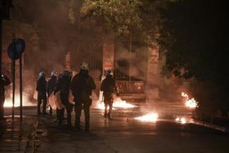 Η αντίδραση των αστυνομικών ήταν άμεση, καθώς απάντησαν με τη χρήση χημικών. Μάλιστα νωρίτερα υπήρξε ένα οδόφραγμα στην οδό Σόλωνος και Ζωοδόχου Πηγής, το οποίο όμως έσπασε από τις αστυνομικές δυνάμεις. Την ίδια ώρα υπάρχει ένα μικρό οδόφραγμα αποτελούμενο από κάδους οι οποίοι έχουν τυλιχθεί στις φλόγες στη διασταύρωση Μπενάκη και Κωλέττη.