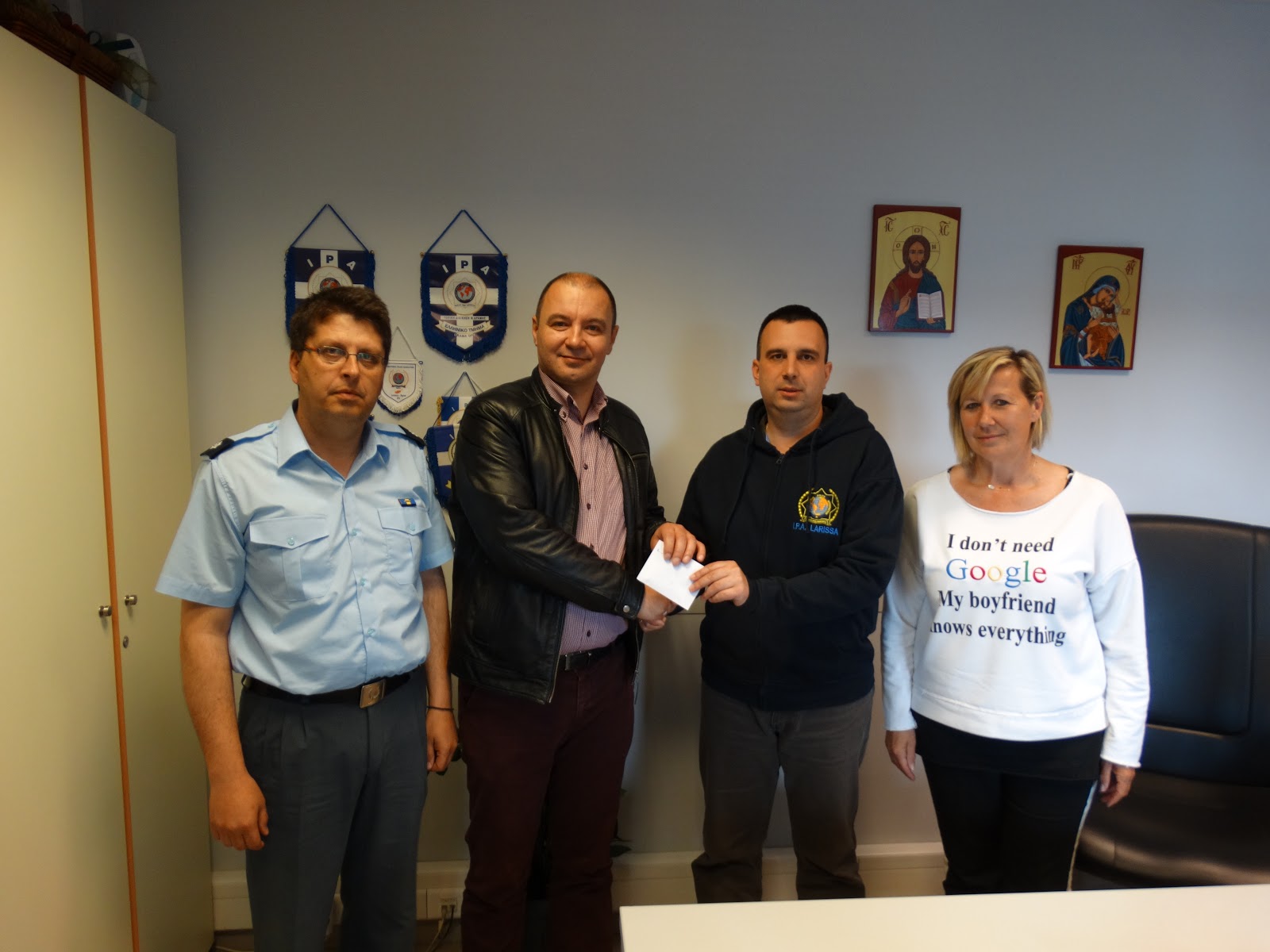 Tο Εθνικό Τμήμα της Διεθνούς Ένωσης Αστυνομικών τηρώντας τις αρχές που την διέπουν (αλληλεγγύη, αλληλοβοήθεια) προσέφερε το χρηματικό ποσό των τριακοσίων (300) ευρώ στο μέλος μας κ. Βασιλείου Γεώργιο για την γέννηση του 4ου τέκνου του , αλλά και σε συνάδελφο μέλος της Τοπικής μας, το αντίστοιχο ποσό για την αντιμετώπιση προβλήματος υγείας.